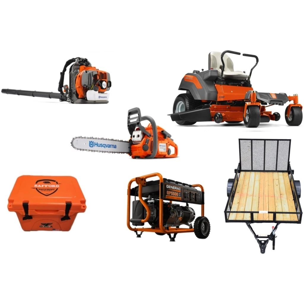 Caliber Trailer Mfg. HH4146 Husqvarna Mower Bundle – Z248F Zero Turn 445 Chainsaw 7680 Generator