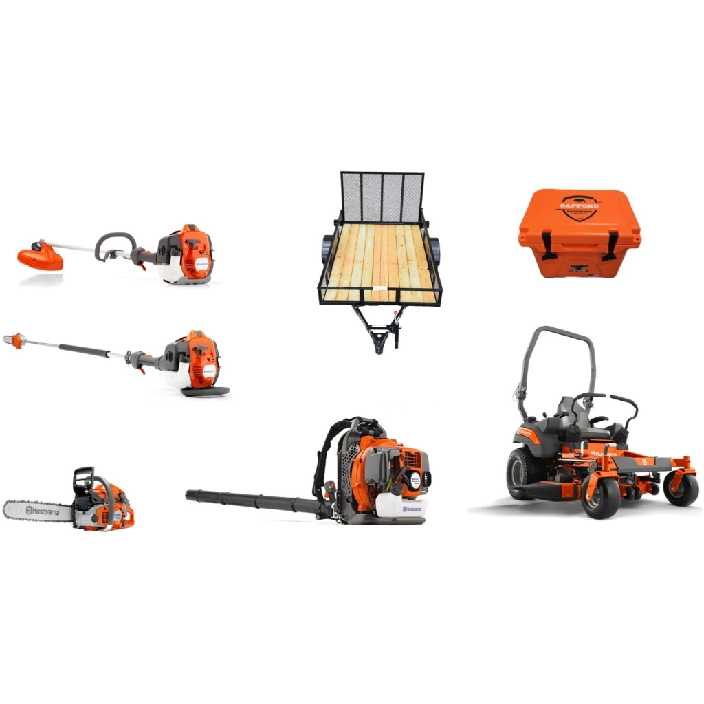 Caliber Trailer Mfg. HH521 Husqvarna Mower Bundle – Z454 Zero Turn 350BT Blower 550 XP Chainsaw