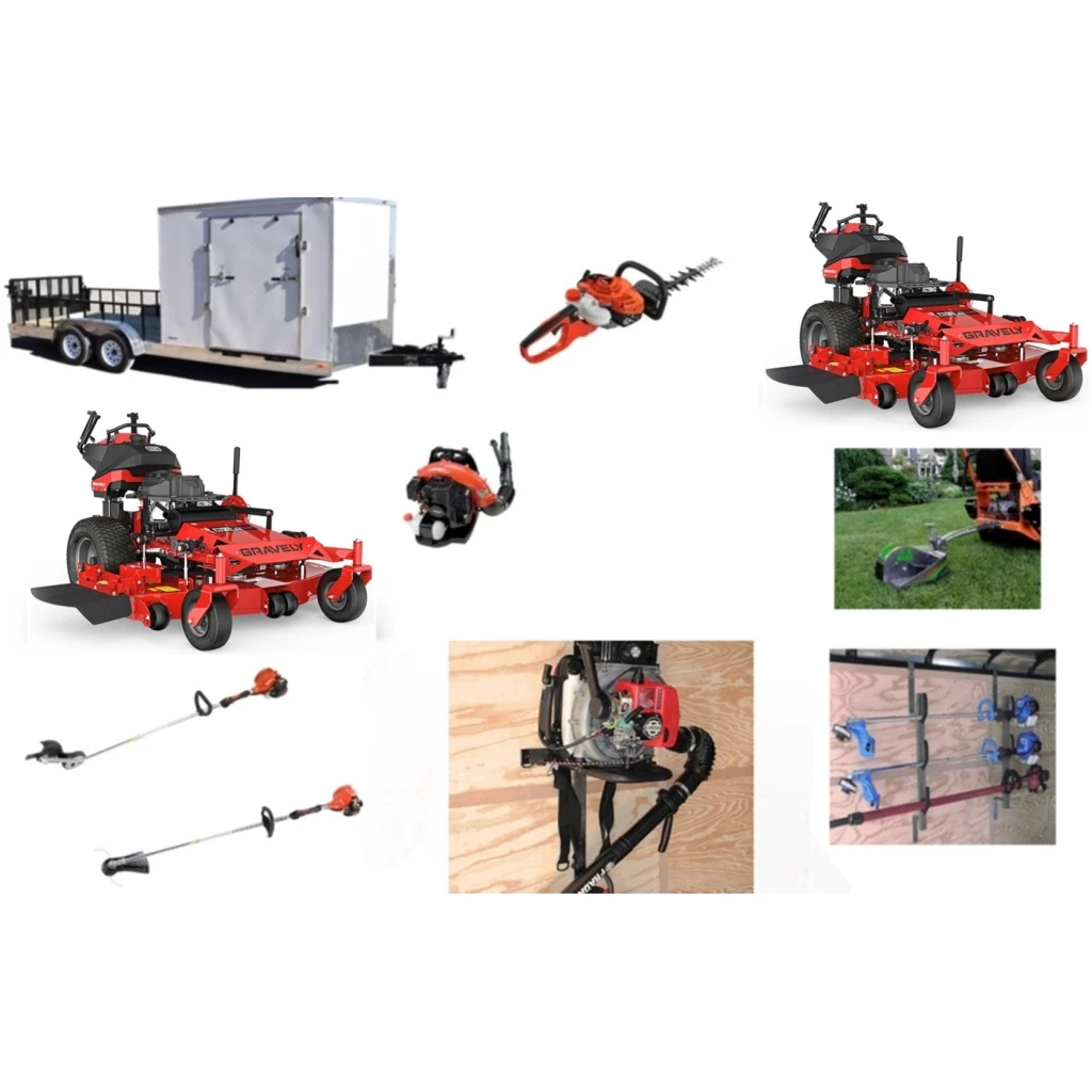 Neither power or transportability are lacking in the GE548 Gravely Mower Bundle that will help you do a professional job on any project with gear like the Gravely Pro-Walk 36 Hydro Walk Behind Mower(2), an ECHO blower, an ECHO trimmer, an ECHO edger, an ECHO hedge trimmer, and many Rack’em racks and a Freedom enclosed trailer.