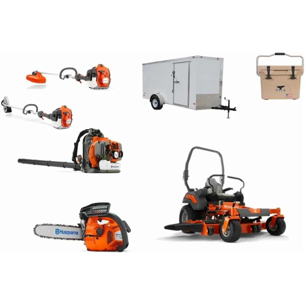 The HH517 Husqvarna Mower Bundle offers lawncare classics for a professional job well done including the Husqvarna Z454 Zero Turn Mower and a blower, trimmer, chainsaw, and edger by Husqvarna as well as a Cynergy enclosed trailer.