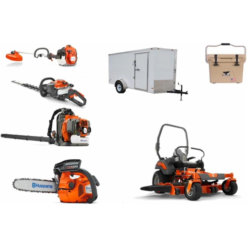 Go big on any job, no matter the size, with the HH518 Husqvarna Mower Bundle that includes the Husqvarna Z454 Zero Turn Mower and a blower, trimmer, chainsaw, and hedge trimmer all by Husqvarna, not to mention a Cynergy enclosed trailer.