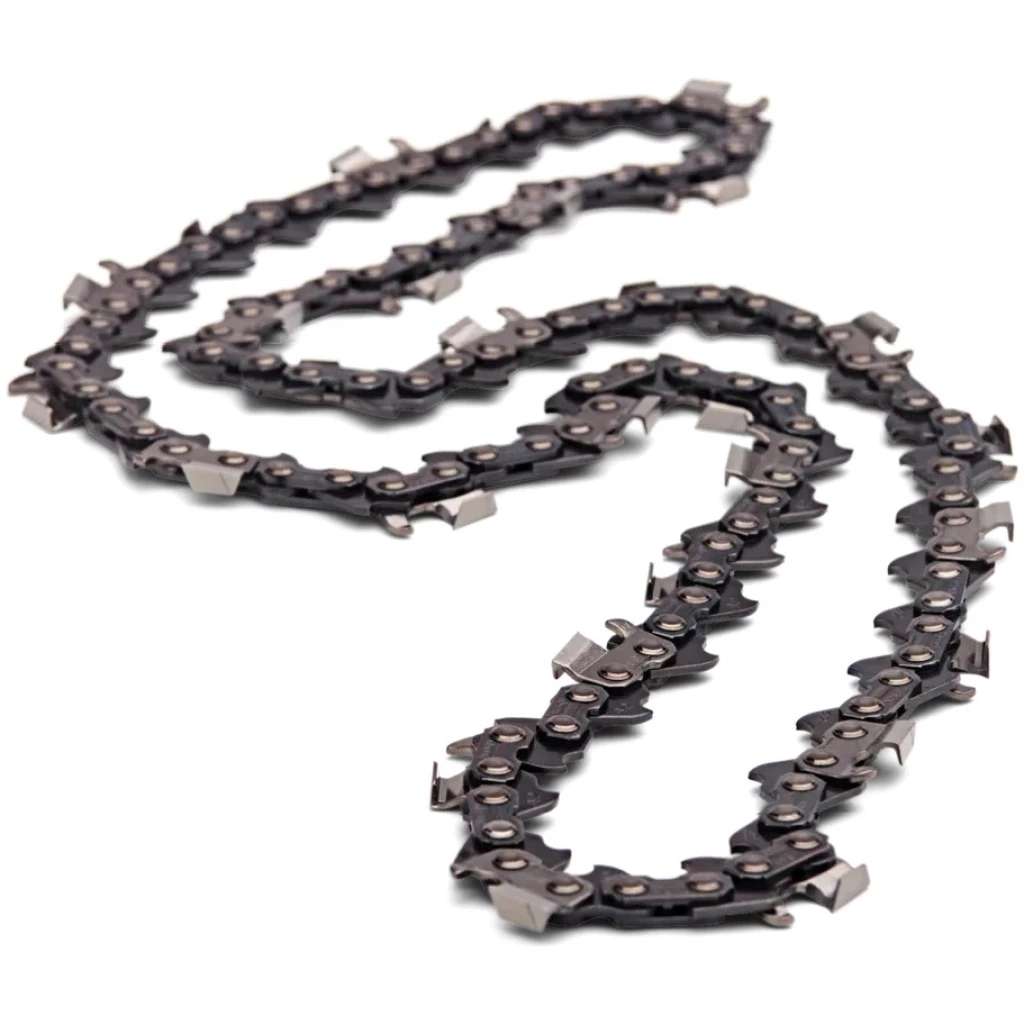 A high-performance, low-vibration chain with square-corner “chisel” cutters for high-production cutting of clean wood. Round ground cutters an standard sequence. Recommended for professional use on 50cc to 100cc saws.