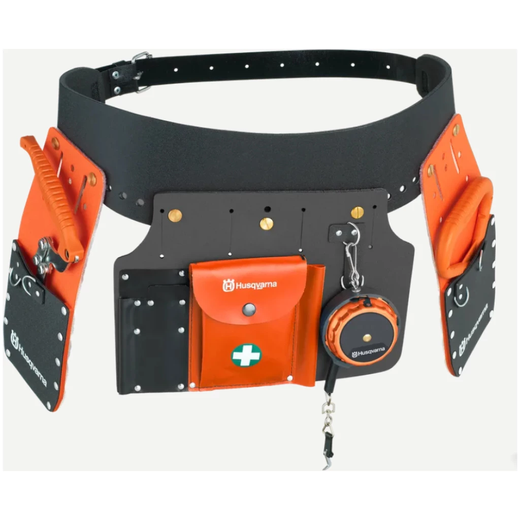 Tool belts complete in profiled box with tool belt, two holsters, rear tool carrier, lifting hook, lifting tong and measuring tape. 10% savings from individual pieces.
